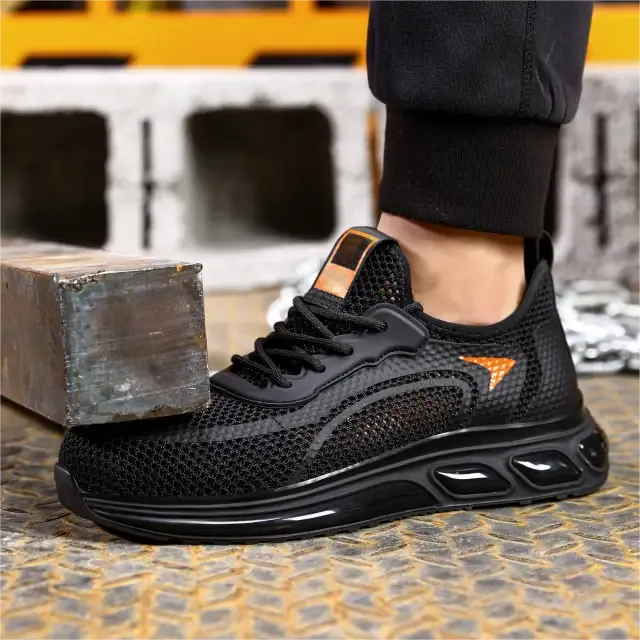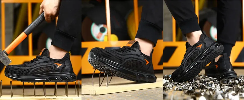 The toe contains an European standard steel toe.It has passed CE and ASTM certification.The steel toe can withstand a resistance of 15 thousand Newtons.The European steel toe is a protective steel toe that meets the anatomical requirements.It is suitable for a spacious toe box and excellent arch support,Wich can support the natural contour of the foot.