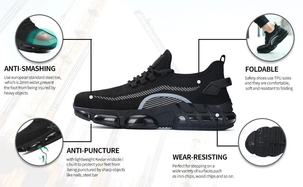 The toe contains an European standard steel toe.It has passed CE and ASTM certification.The steel toe can withstand a resistance of 15 thousand Newtons.The European steel toe is a protective steel toe that meets the anatomical requirements.It is suitable for a spacious toe box and excellent arch support,Wich can support the natural contour of the foot.