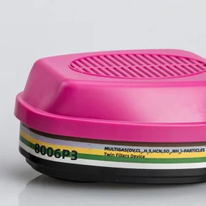 formaldehyde, hydrofluoric acid, hydrogen cyanide, etc. Combined with a P3 filter against particulate. |