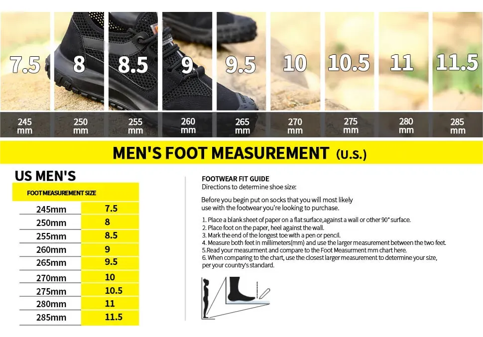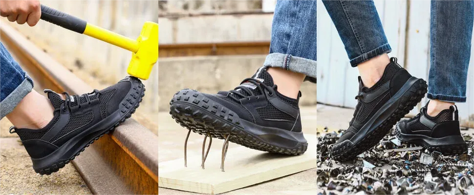 The toe contains an European standard steel toe.It has passed CE and ASTM certification.The steel toe can withstand a resistance of 15 thousand Newtons.The European steel toe is a protective steel toe that meets the anatomical requirements.It is suitable for a spacious toe box and excellent arch support,Wich can support the natural contour of the foot.